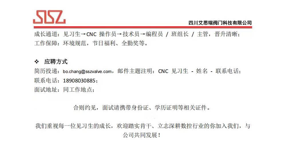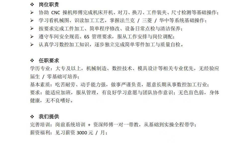 简历附件文件名:“CNC见习生-姓名-联系电话”
