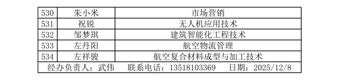 公示期(2025年12月9日至12月16日),如有异议,请向招生就业处(或各学院)反映。