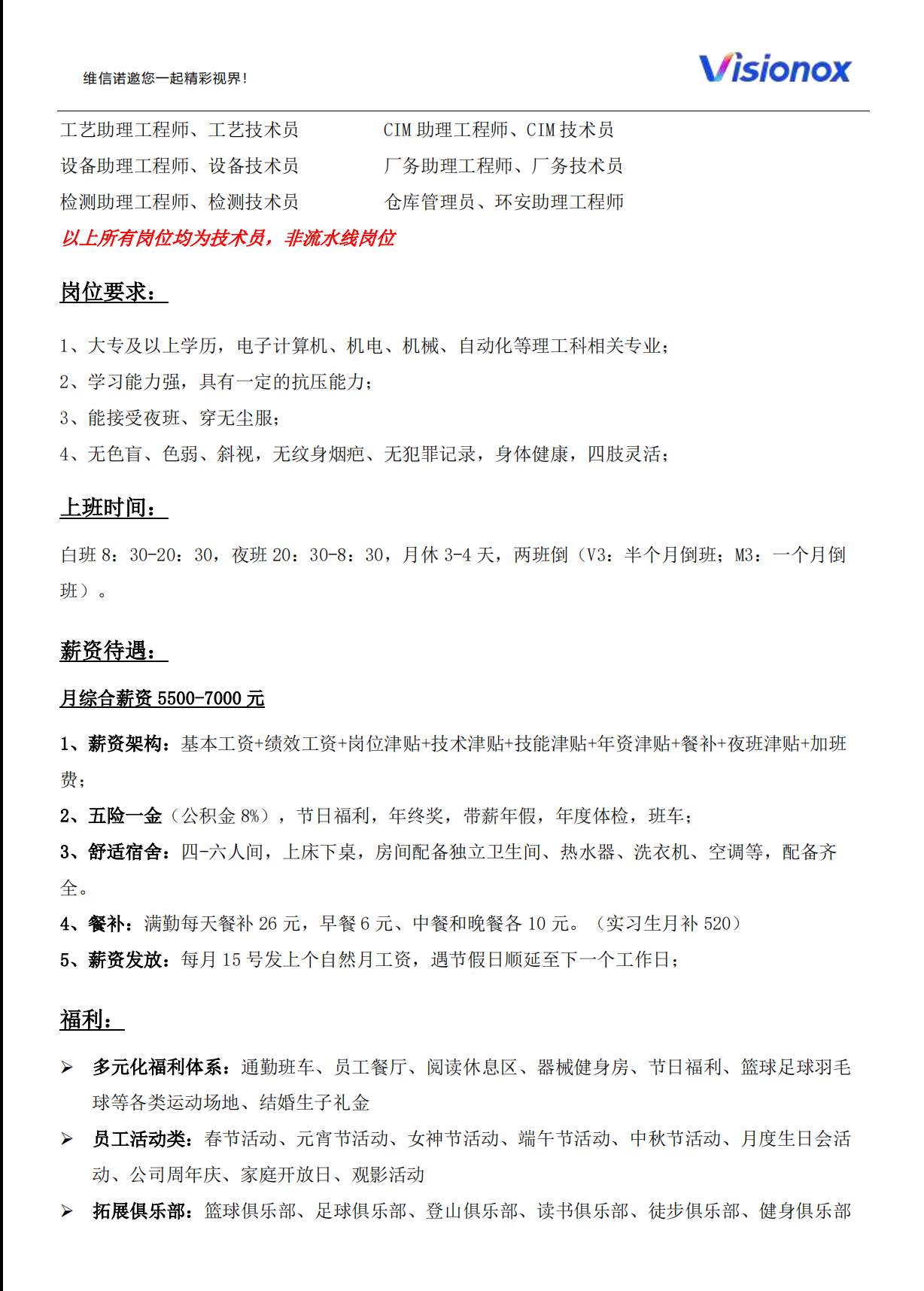 制造高级技术员、制造技术员、整合助理工程师、整合技术员、品保高级技术员、品保技术员 、自动化助理工程师、自动化技术员、工艺助理工程师、工艺技术员 、CIM 助理工程师、CIM 技术员、设备助理工程师、设备技术员、 厂务助理工程师、厂务技术员、检测助理工程师、检测技术员 、仓库管理员、环安助理工程师