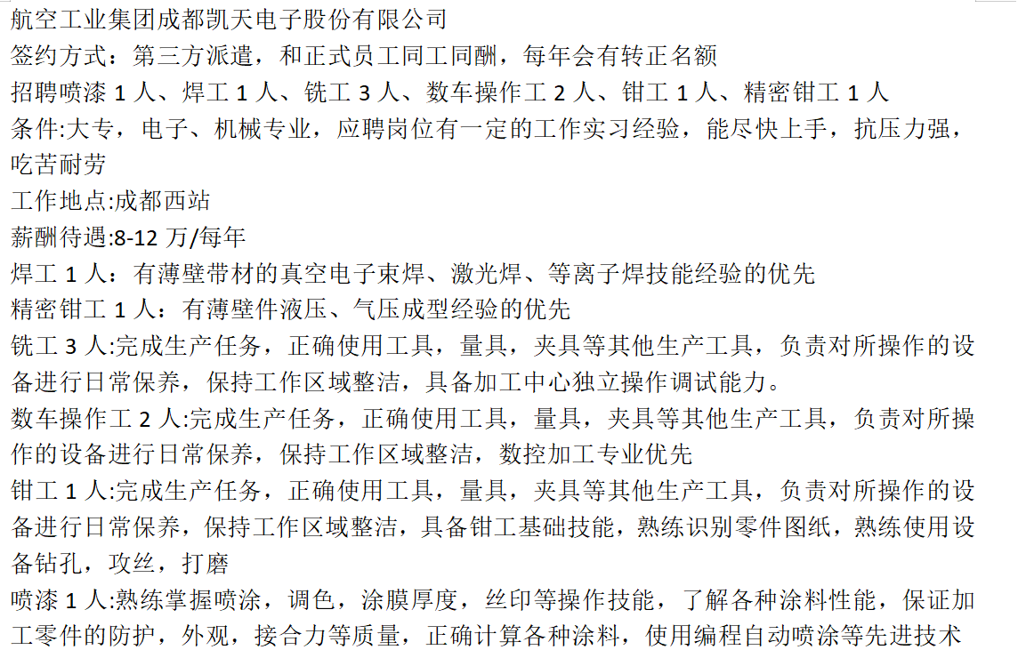喷漆,焊工,铣工,数车操作工,钳工,