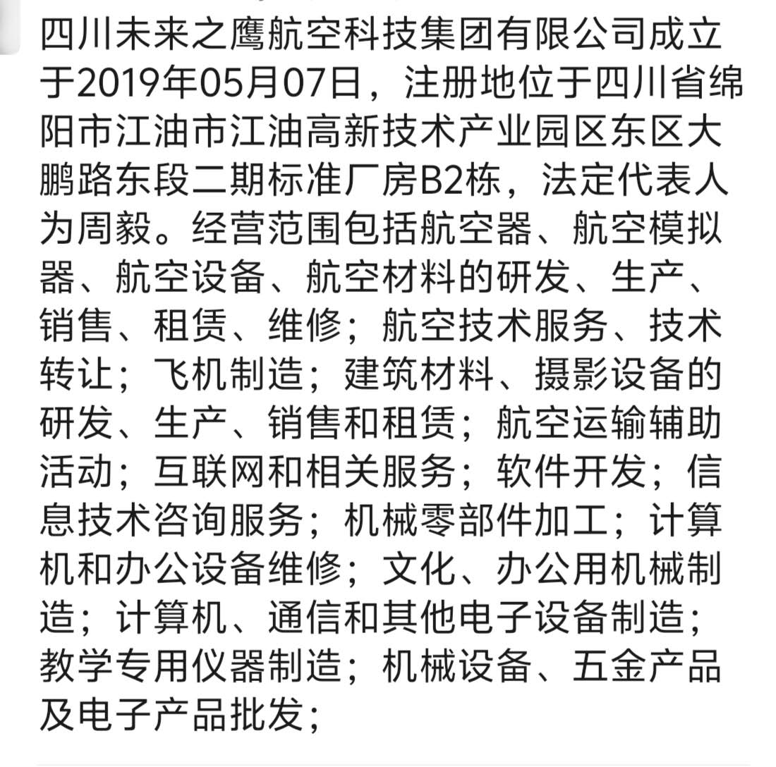 |来源:“四川未来之鹰航空科技集团有限公司”
