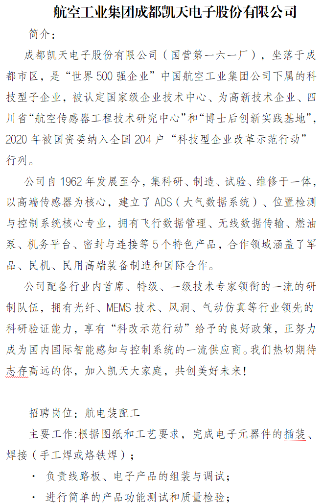 | 来源:“航空工业集团成都凯天电子股份有限公司”