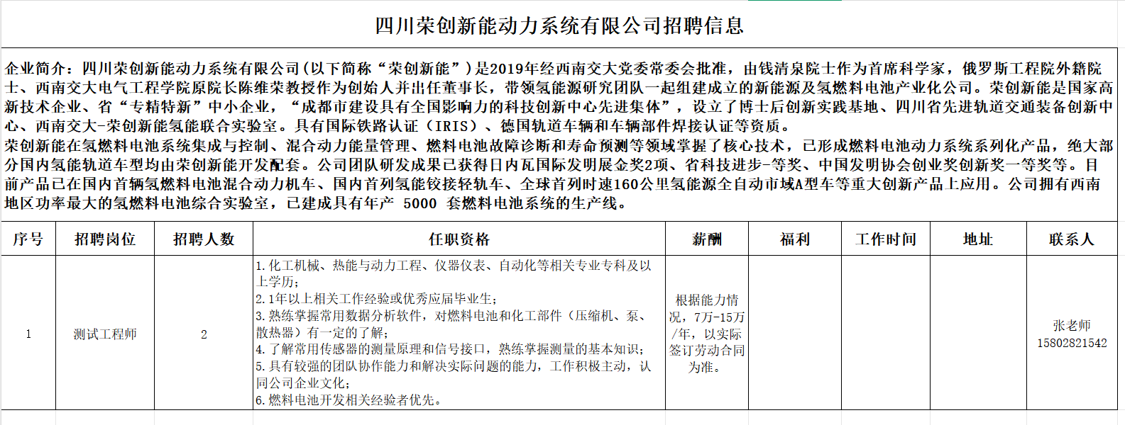 招聘岗位:测试工程师(详情见下)