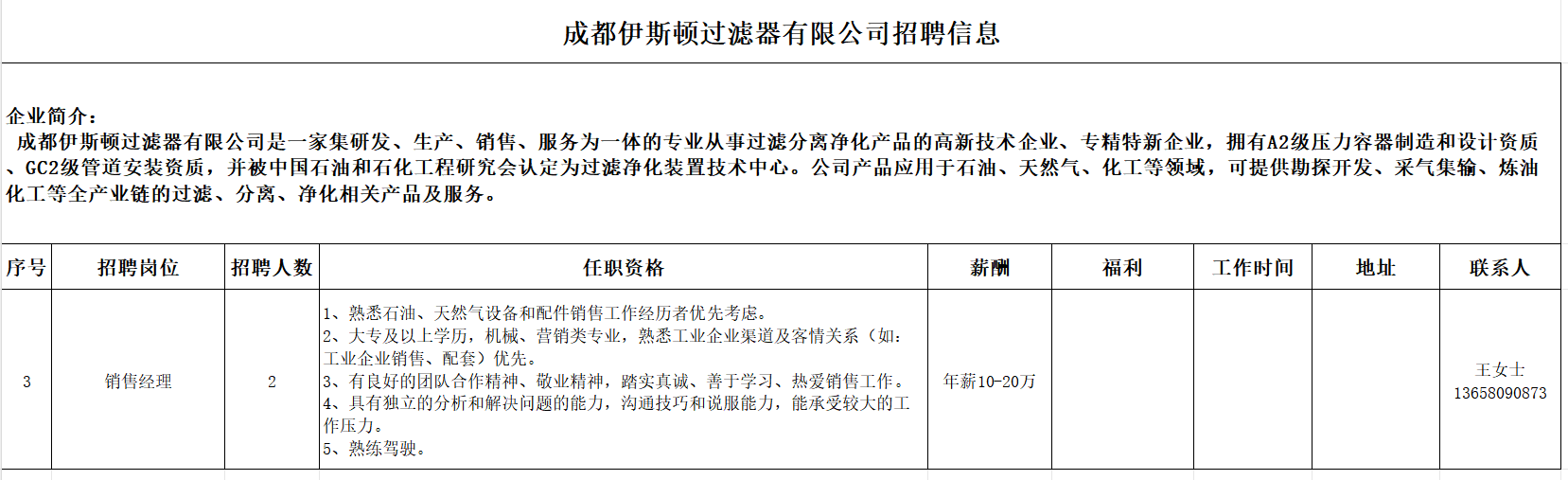 招聘岗位:销售经理(详情见下)