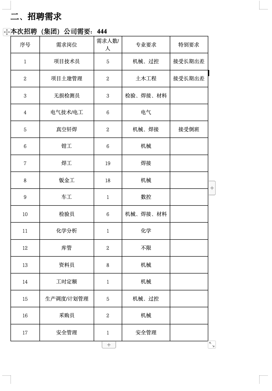 项目技术员、项目土建管理、无损检测员、车工、