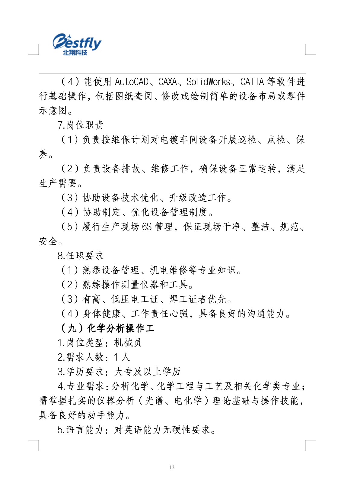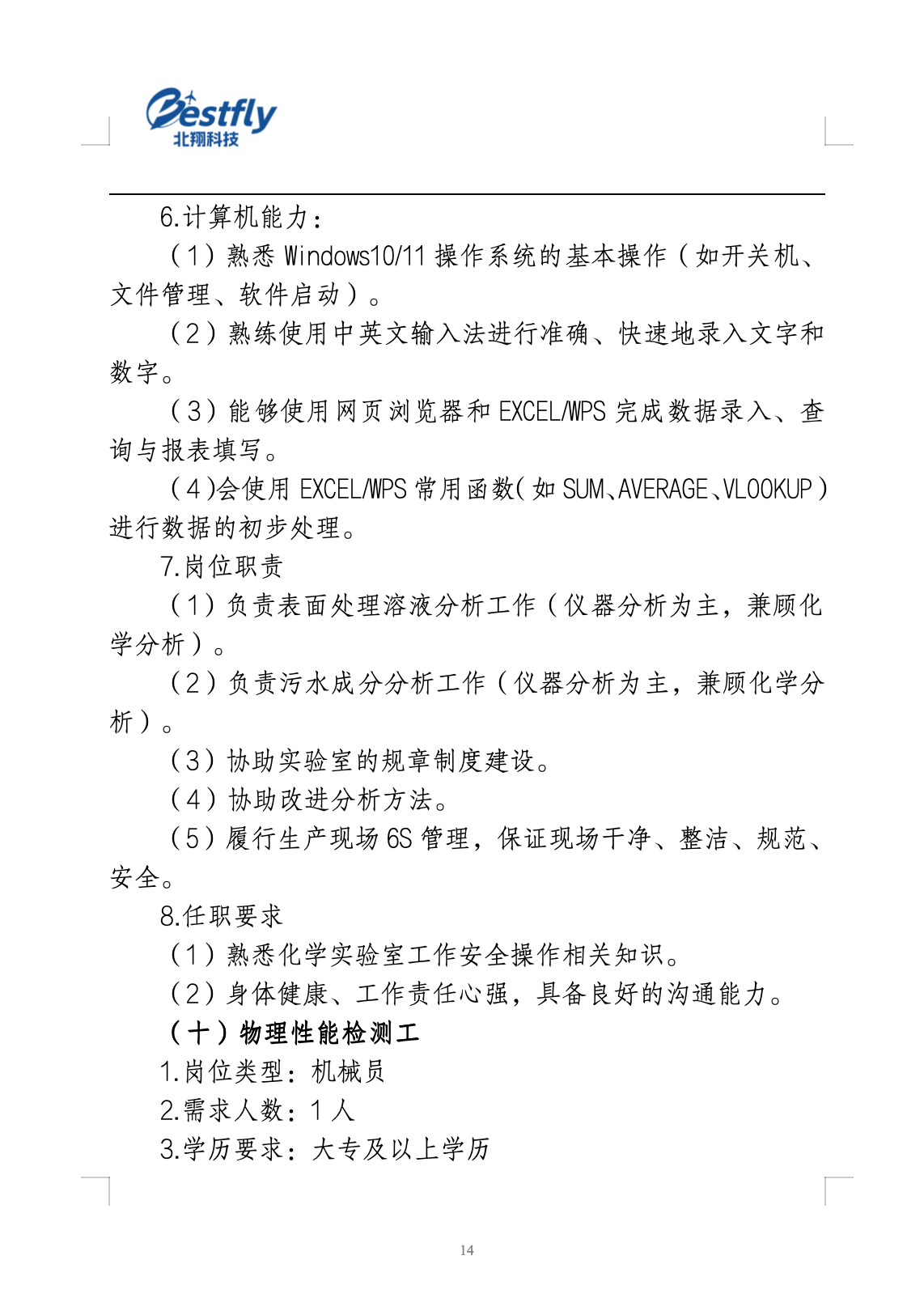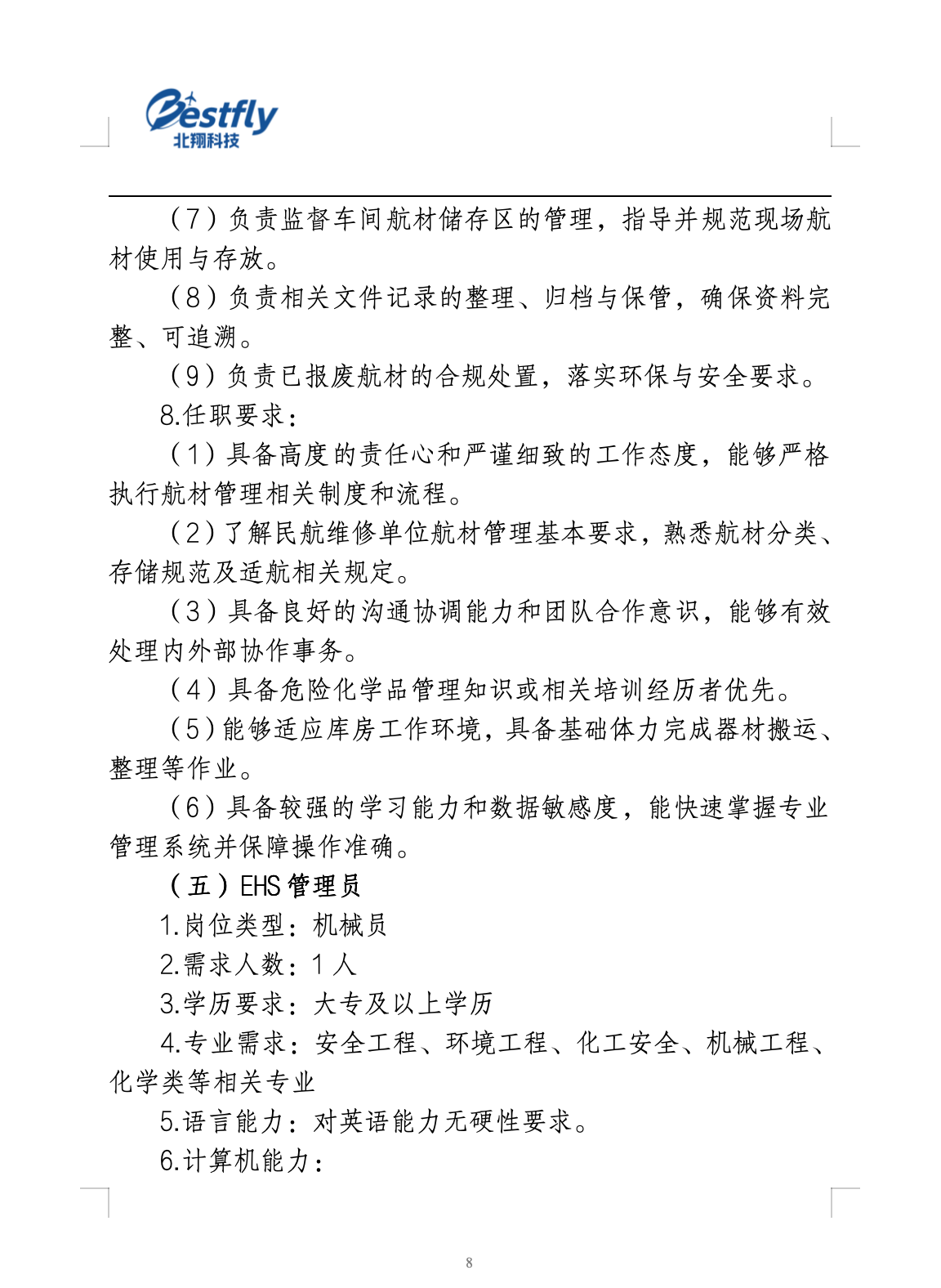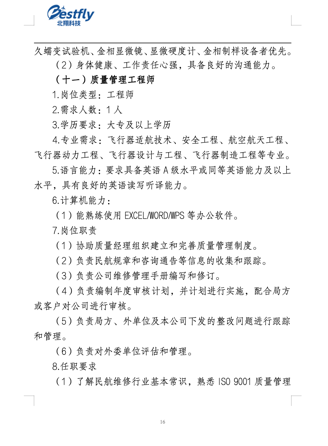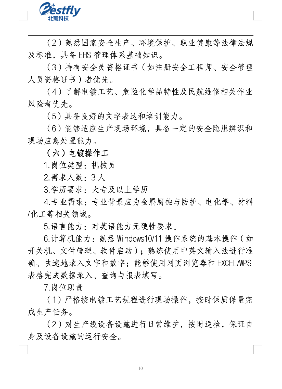 物流管理员,资产管理员航材管理员,EHS管理员,电镀操作工,污水处理工,起落架大修机械员,设备及安全工,化学分析操作工,物理性能检测工,质量管理工程师,适航管理工程师